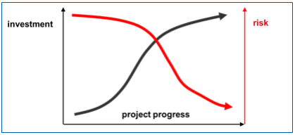 Fig.: Risk and cumulative investment during the project progress. Source GEOELEC final report [p. 50].